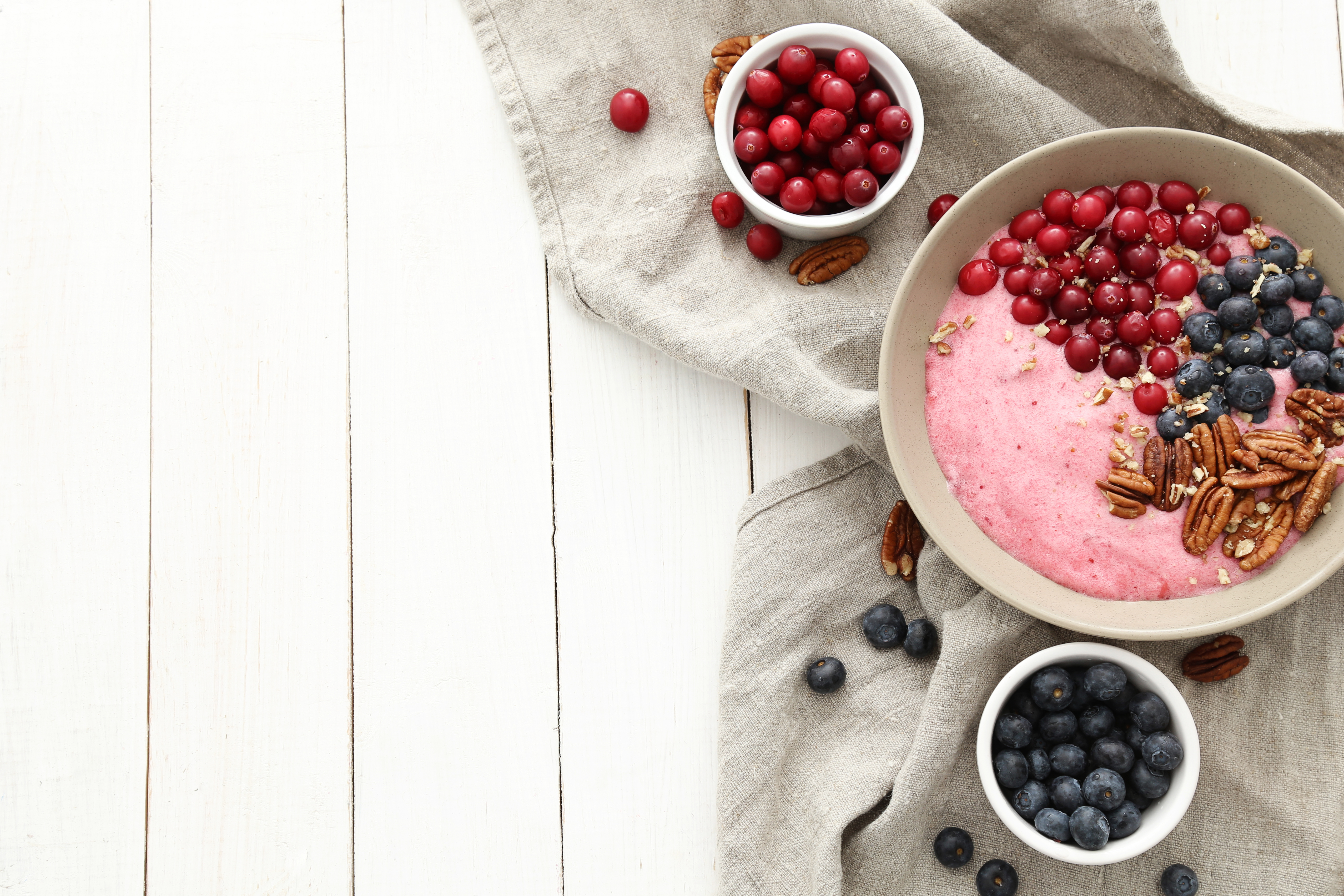 Evde bulunan malzemelerle bir çırpıda yapabileceğiniz lezzetli çilekli smoothie tarifi için ilk olarak çilekleri bol suda yıkayarak başlayın. Ardından frambuazları ekleyerek, smoothie makinenizde karıştırın içerisine 1 yemek kaşığı bal, 4 yemek kaşığı yoğurt ve 1 yemek kaşığı yulaf ezmesi ekleyerek karıştırın. İşte lezzetli smoothie bowl tarifiniz hazır.